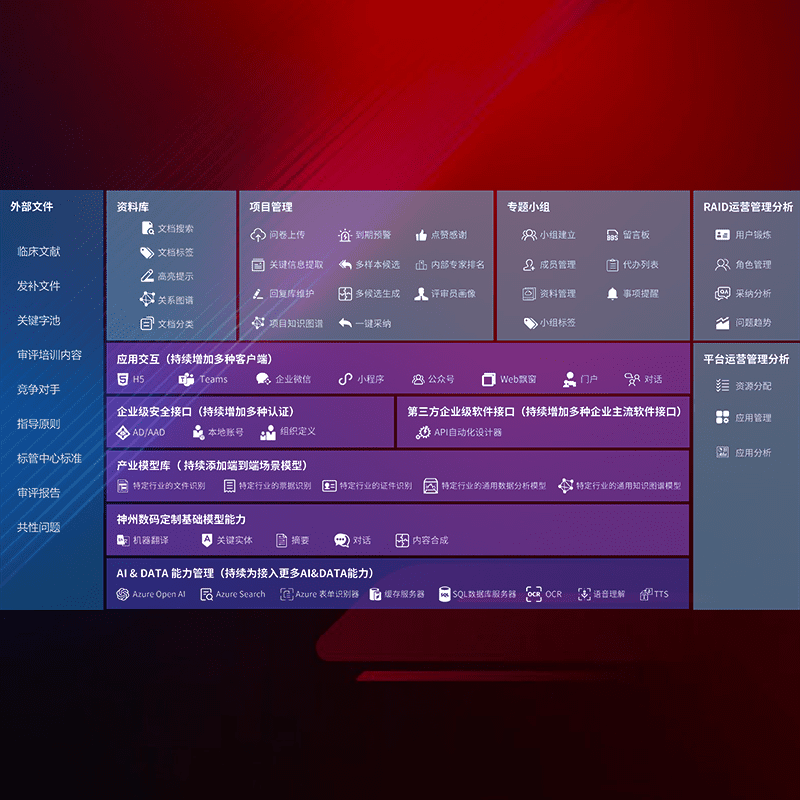 医疗器械产品上市前,,,,要熟悉严格与繁复评审标准,,,整理分析监管机构指导文件中的海量信息。。。企业急需一个智能化解决方案,,,,提升知识管理效率,,,提高评审通过率,,,以提升其市场竞争力。。。